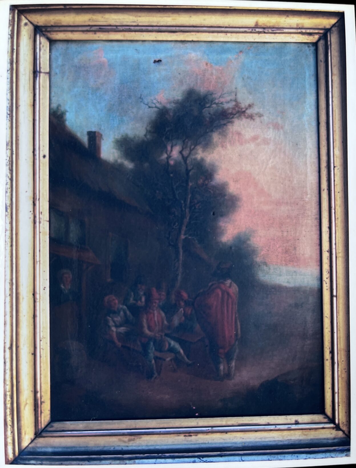 Accroché dans une pièce chauffée au charbon de bois, le tableau présente un épais dépôt de suie.